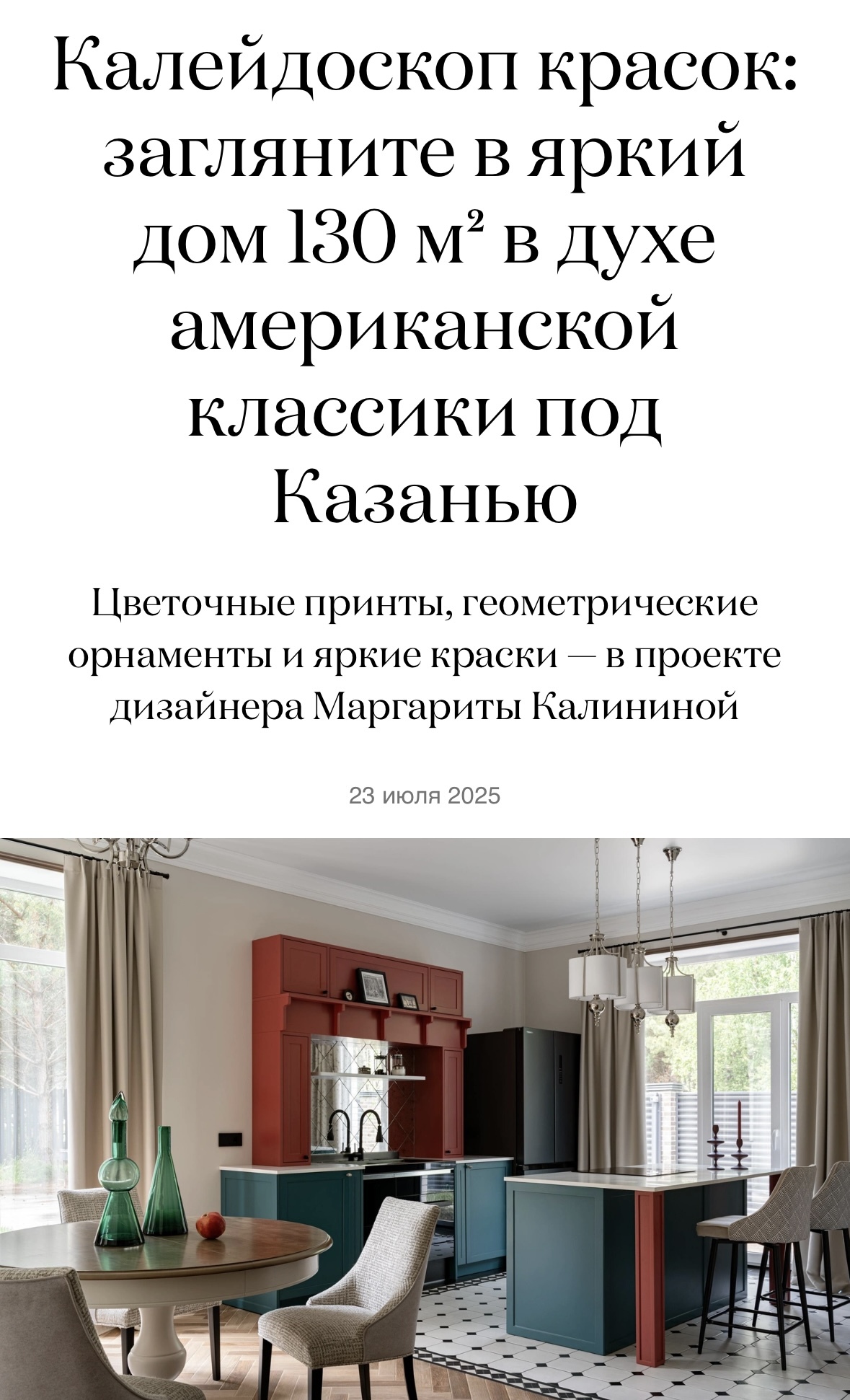 Хочется отметить эффективно выстроенный рабочий процесс и перфекционизм дизайнера. Решения принимаются взвешенно и только тогда, когда рассмотрятся все варианты. В итоге мы получили грамотный проект перепланировки дома и дизайн-проект, где были учтены все пожелания по свету, цветовым решениям, материалам и бюджету. Маргарита обладает хорошим вкусом и чувством стиля, а также очень хорошо работает с цветом. Изначально у нас был страх ярких цветов в интерьере, но она смогла нас убедить, что все будет смотреться органично. Что в итоге и получилось. Во время строительных работ Маргарита всегда была на связи и все возникающие вопросы решались в короткие сроки. Были моменты, когда нужно было искать замену материалам, изначально заложенным в проект, с этим тоже не возникало проблем. Очень помогли ее рекомендации в подборе специалистов. Все подрядчики, которых рекомендовала Маргарита были профессиональными и порядочными. В итоге мы остались очень довольны проделанной работой. Все получилось очень грамотно, функционально и очень красиво. Кухня, гардеробные и зеркала - это отдельная любовь. Продумано все до мелочей. От наполнения до цвета и размера кисточек. Однозначно можно сказать, что Маргарита профессионал в своем деле.Это тот случай, когда воедино слились талант, трудолюбие и ответственность.